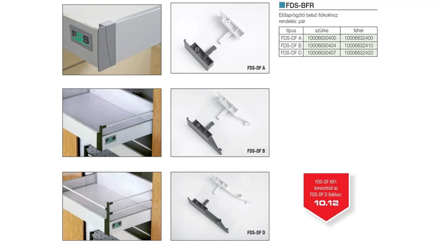 FDS DUPLAFALÚ FÉM FIÓKOLDAL FDS-BFR ELŐLAPRÖGZÍTŐ BELSŐ FIÓKOLDALHOZ FEHÉR