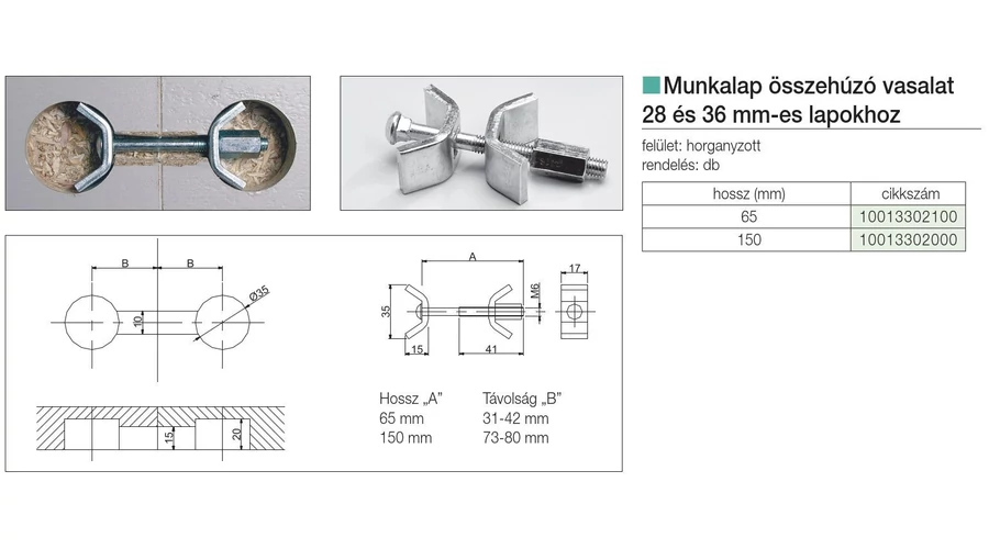 MUNKALAP VASALÁS ÖSSZEHÚZÓ VASALAT 65 mm CINK