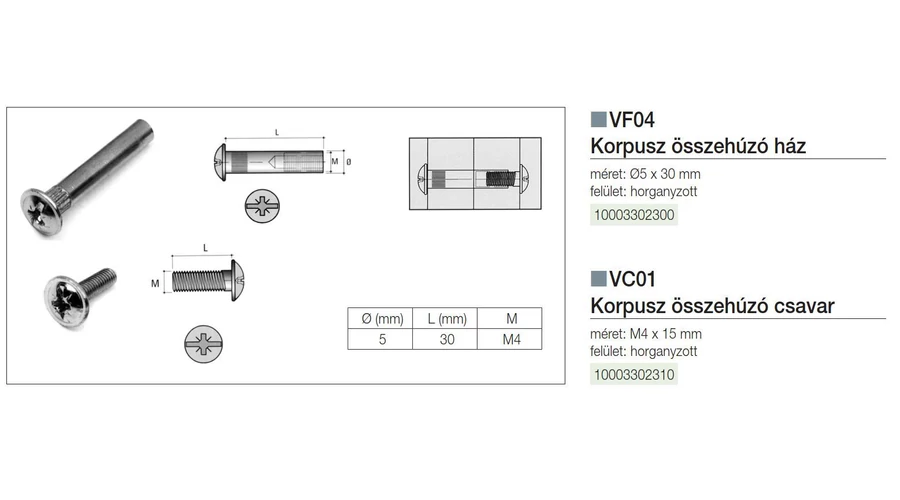 ÖSSZEHÚZÓ VF04 KORPUSZÖSSZEHÚZÓ HÁZ 5x30mm HORGANYZOTT