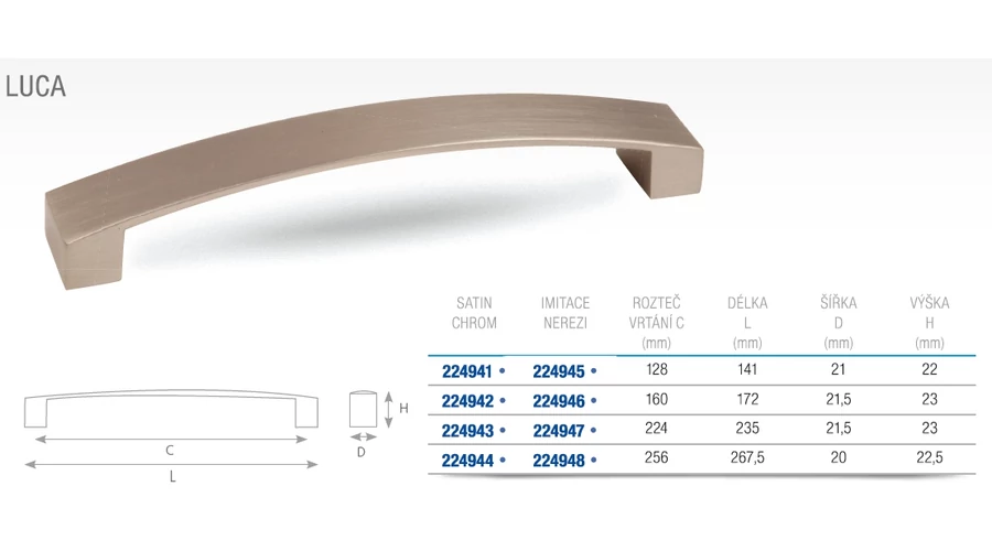 TULIP Fogantyú Luca 160 nemesacél imitáció + csavar